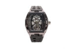 - Циферблат: Стилен в черно със сребристи акценти и оригинален скелетон дизайн, който придава динамика и дълбочина. Маркерите и стрелките са ясно видими, с контрастен блясък за по-лесно разчитан с подсветка