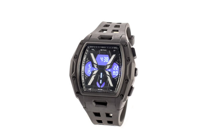 - Корпус: Масивен и здрав, в метален черен цвят с леко геометрични линии, което подсилва усещането за мъжественост и устойчивост.